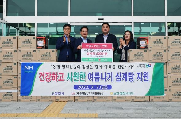 [제주교통복지신문 김강석 기자] (사)우리농업지키기운동본부는 7일 시청 전정에서 삼계탕 260박스(520만 원 상당)를 저소득층을 위해 전달해 달라며 영천시에 기탁했다.