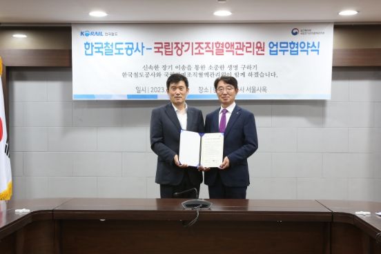 이날 협약식에는 신제수 국립장기조직혈액원장, 정구용 한국철도공사 여객사업본부장 등 양 기관 관계자들이 참석했다.