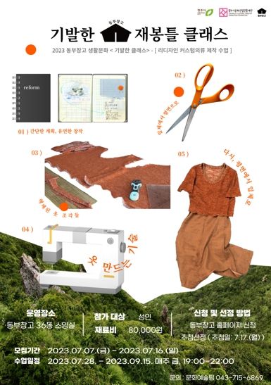 청주시문화산업진흥재단이 운영하는 동부창고가 오는 16일까지 ‘기발한 클래스-리디자인 커스텀의류 제작’에 함께할 수강생 6명을 모집한다.
