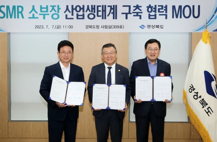 경주시‧경북도는 7일 경북도청 안민관에서 한국재료연구원과 소형모듈원자로(SMR) 소재‧부품‧장비 기술개발 및 산업 생태계 구축을 위한 업무협약(MOU)을 체결했다.