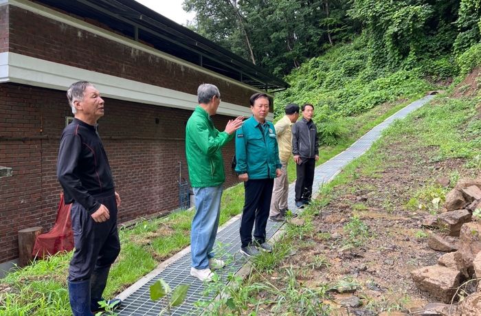 이어, 권기창 시장은 김호석 안동시의회 의원과 용상동 마을주차장 옹벽 전도 현장을 찾아 추가 피해를 막기 위한 보완책을 논의했다.