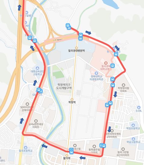칠곡경대병원에서 승차하면 5개의 버스정류장을 지나 팔거역을 거쳐 군위로 들어가기 때문에 승객들은 10여 분 정도의 시간을 불필요하게 낭비하는 셈이다.