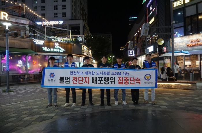 [제주교통복지신문 김강석 기자] 대전 유성구는 지난 6일 도시경관을 저해하는 불법 전단 배포행위를 근절하기 위해 유성경찰서와 함께 특별 야간 단속을 실시했다고 밝혔다.