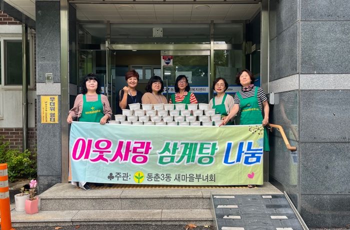 같은 날, 동춘3동에서는 새마을부녀회 회원들이 홀몸 어르신을 대상으로 직접 만든 ‘이웃사랑 삼계탕’ 50인분을 전달하는 행사를 열었다.