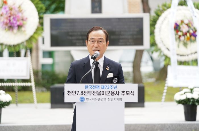 장규용 한국자유총연맹 천안시지회장은 추모사를 통해 “현재 대한민국이 누리는 자유와 평화, 그리고 번영은 이들의 숭고한 희생이 있었기에 가능했음을 잊지 말아야 한다”고 강조했다.