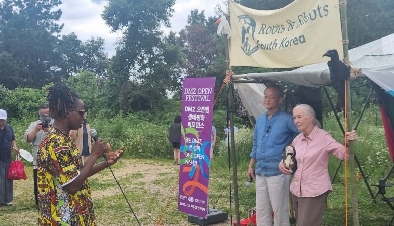 제인 구달 박사는 "이곳 DMZ 근처로 걸어오면서 오래된 벙커가 수풀에 파묻힌 모습을 봤다. 다시 한번 자연의 위대한 회복력을 실감했다"며 "한반도도 자연처럼 평화로운 상태로 회복하고 DMZ에서 북측 사람들을 만날 수 있는 날이 오기를 진심으로 기원한다"라고 말했다.