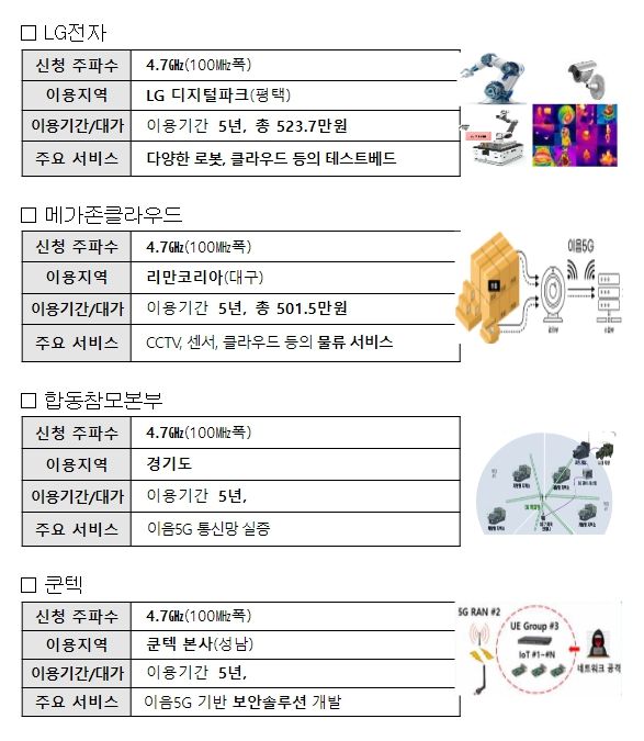 아울러, 과기정통부는 보안 솔루션 기업 쿤텍과 합동참모본부에 각각 통신 솔루션 검증을 위한 이음5세대(5G) 주파수공급을 완료(6.8., 6.22.)한 바 있다.