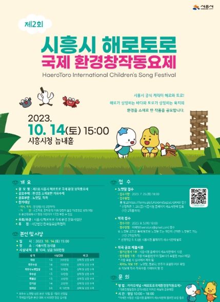 [제주교통복지신문 김강석 기자] 시흥시가 주최하고, 해로토로 국제 환경 문화사업단이 주관하는 ‘제2회 시흥시 해로토로 국제 환경 창작동요제’ 공모가 시작됐다.