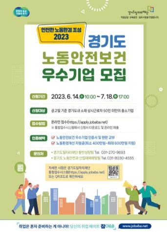 [제주교통복지신문 김강석 기자] 경기도와 경기도일자리재단이 ‘2023년 경기도 노동 안전보건 우수기업 인증사업’에 참여할 모범 중소기업을 오는 18일까지 모집한다.