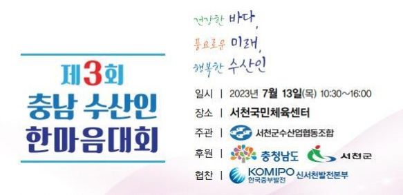 [제주교통복지신문 김강석 기자] 충남도는 오는 13일 서천국민체육센터에서 코로나19 확산으로 잠정 중단했던 ‘제3회 충남 수산인 한마음대회’를 4년 만에 개최한다고 10일 밝혔다.
