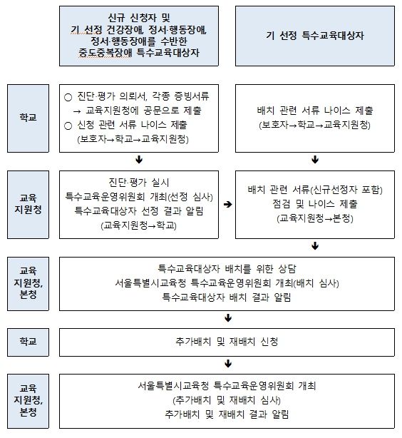 또한, 서울시교육청은 작년에 신설한 「나이스 서울특수교육 배치시스템」을 고입 외에 중입 배치 원서 접수에도 확대 적용하여, 배치업무의 효율성과 학부모 신뢰를 제고할 수 있도록 노력할 계획이다.