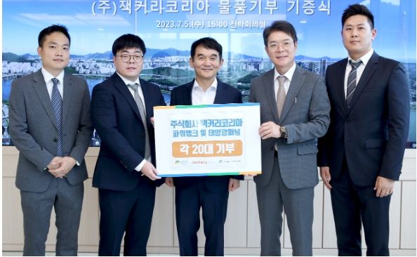 [제주교통복지신문 김강석 기자] 서울 성동구가 지난 5일 잭커리코리아로부터 휴대용 파워뱅크 및 태양광 충전 패널 제품 각 20대를 기증받았다.