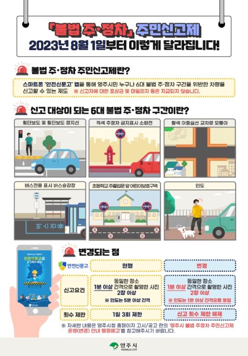[제주교통복지신문 김강석 기자] 영주시는 8월부터 불법 주정차 주민신고제 기준을 일부 변경·운영한다.