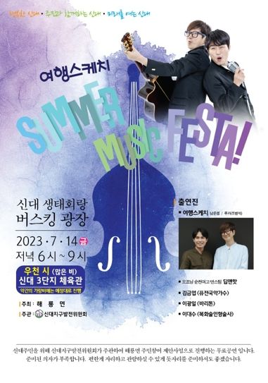 [제주교통복지신문 김강석 기자] 순천시 해룡면이 주최하고 신대지구 발전위원회가 주관하여 개최하는 신대 생태회랑 힐링 버스킹 공연이 오는 14일 생태회랑 버스킹 공연장에서 오후 6시부터 9시까지 개최된다.
