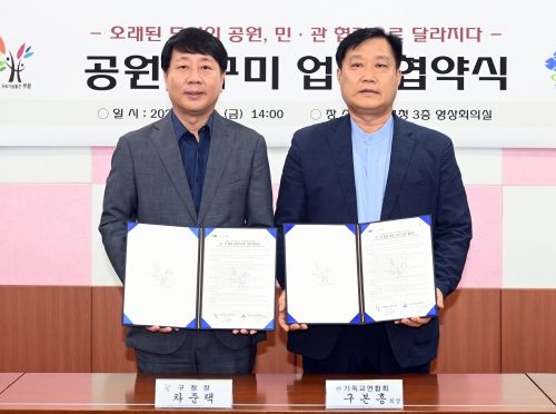 협약은 지역 내 조성된 공원, 녹지, 쉼터를 대상으로 인근 교회 및 주민들의 참여를 통해 행정의 손길이 미치지 못하는 녹지공간을 함께 조성하고 가꾸기 위한 상호 협력체계를 구축하고자 마련됐다. 협약기간은 3년이다.
