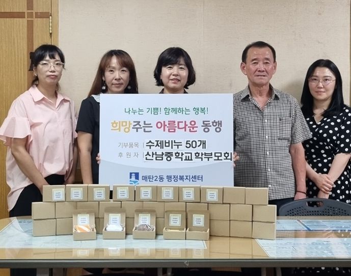 한편, 산남중학교 학부모회는 2020년부터 지속적으로 수제비누를 기부하고 있으며 이 비누들은 매탄2동 경로당과 저소득 어르신 등에 전달됐다.