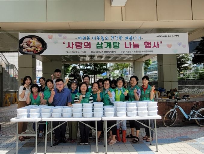 [제주교통복지신문 김강석 기자] 의정부시 호원2동행정복지센터는 호원2동 새마을부녀회가 초복을 앞두고 7월 7일 무더운 여름을 어려운 이웃들과 함께 이겨내고자 삼계탕 나눔 행사를 가졌다.