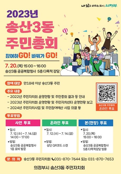 [제주교통복지신문 김강석 기자] 의정부시 송산3동행정복지센터는 송산3동 주민자치회가 7월 20일 ‘제2회 송산3동 주민총회’를 앞두고 주민 의견수렴을 위한 사전 투표를 진행한다고 밝혔다.
