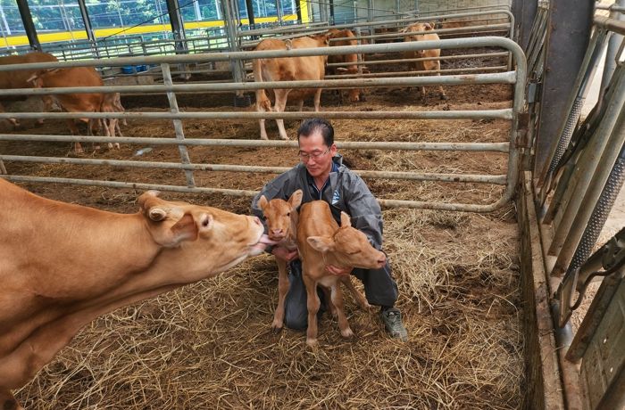지난해 6월 8일 암송아지 세 마리가 한꺼번에 태어나 언론의 주목을 받았는데 일 년 뒤인 지난 7월 2일 세쌍둥이를 낳았던 어미 소가 또 쌍둥이를 출산했다.