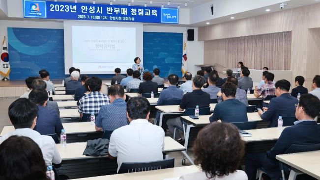 [제주교통복지신문 김강석 기자] 안성시는 7월 10일, 시청 대회의실에서 5급 이상 간부 공무원 60여명을 대상으로 반부패 청렴 교육을 실시했다.
