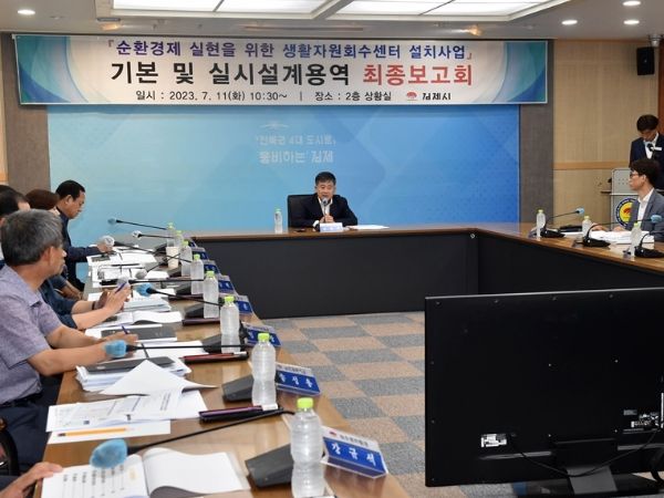 [제주교통복지신문 김강석 기자] 김제시는 지난 11일 2층 상황실에서 자원순환 실현을 위한 생활자원회수센터 설치사업 기본 및 실시설계용역 최종보고회를 개최했다고 밝혔다.