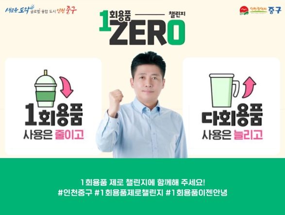 [제주교통복지신문 김강석 기자] 김정헌 인천 중구청장이 지난 10일 1회용품 줄이기를 위한 범국민적 환경실천 운동인 ‘1회용품 제로 챌린지’ 캠페인에 동참했다.