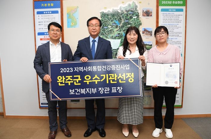 [제주교통복지신문 김강석 기자] 완주군이 지역사회 통합건강증진사업 우수성을 인정받아 보건복지부 장관상을 수상했다.