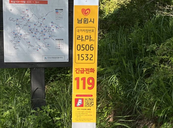 남원시는 국가지점번호판 일제조사를 완료하여 훼손·망실된 번호판에 대해서는 보수 정비를 진행하고 더 광범위한 지역에서 위치파악이 용이하도록 신규 60개소를 추가 설치하기로 했다.