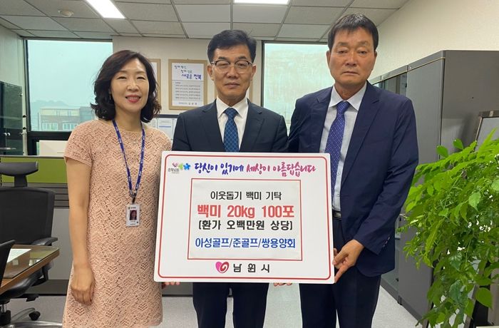 이번 기부된 백미는 아성골프연습장, 준스크린골프, 쌍용양회 광주지사에서 십시일반 마음을 모아 준비한 것으로 관내 저소득 세대, 홀로 사는 어르신 등 소외계층 100가구에 전달할 예정이다.