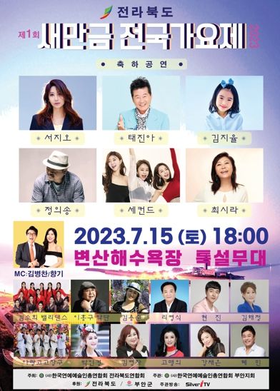 [제주교통복지신문 김강석 기자] 전국 규모의 2023 새만금 전국가요제 행사가 7월 15일 오후 6시부터 변산해수욕장 특설무대에서 개최한다.