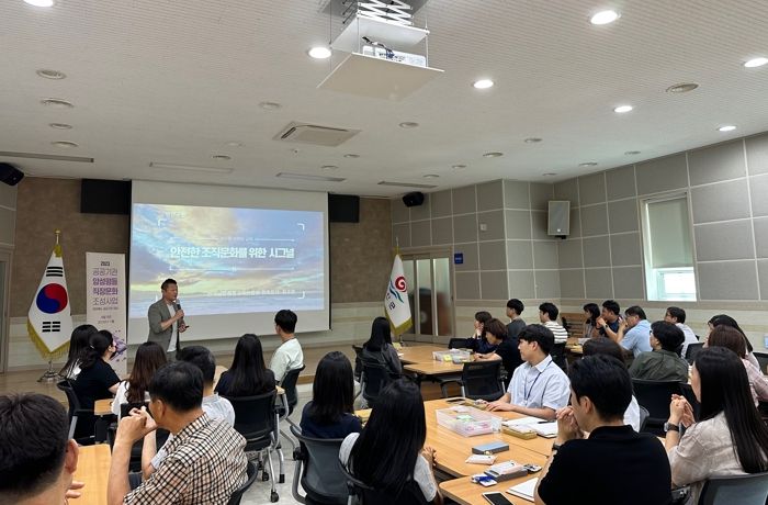 이날 교육은 같이교육연수원 정주영 대표가 ‘안전한 조직문화를 위한 시그널’이라는 주제로 교육 참여자가 함께하는 참여형으로 진행했으며, 안전한 조직문화를 위한 조직문화 조성의 필요성과 이를 위한 조직구성원의 역할 등을 논의했다.