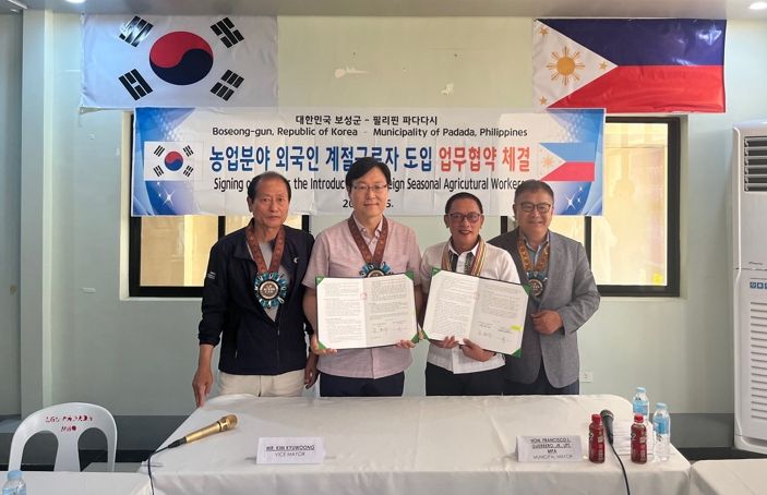 [제주교통복지신문 김강석 기자] 보성군은 지난 5일 농촌 인구감소와 일손 부족 해결을 위해 필리핀 ‘파다다시’ 외국인 계절근로자 도입에 관한 업무협약을 체결했다고 밝혔다.