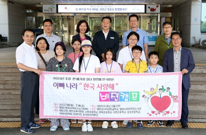 ‘아빠 나라 한국 사랑해 비젼캠프’로 명명된 이번 행사는 10일부터 14일까지 진행되며, ‘한·베’ 가정 자녀들은 이날 태안군청 방문을 시작으로 태안군 소재 학교 및 주요 관광지 견학, 서울 방문 등에 나설 예정이다.