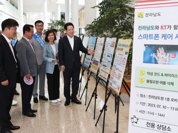 김영록 전남도지사는 11일 도청 1층 로비에서 열린 스마트폰 케어 서비스 현장을 둘러본 후 “나와 내 가족의 소중한 정보를 지키는 것은 생활 속 작은 실천에서부터 시작된다”며 “정보보안 실천수칙이 도민의 일상생활 속에 자리잡도록 찾아가는 캠페인을 계속해서 확대하겠다”고 말했다.