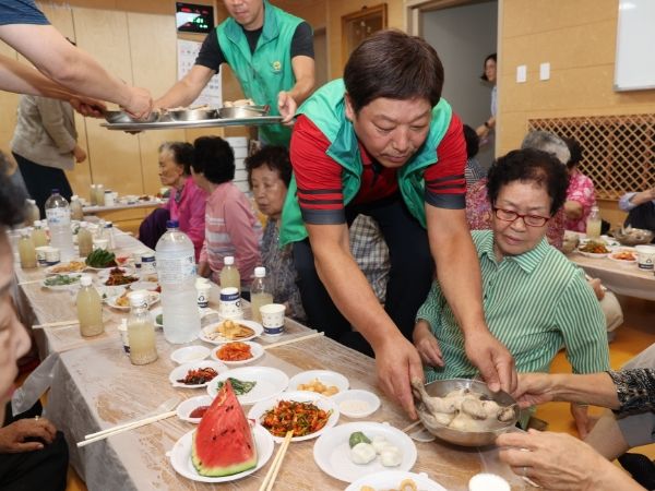 이날 행사는 무더위에 지친 어르신들을 위로하고 건강하게 여름을 날 수 있도록 직접 끓인 영양삼계탕과 다과를 대접하는 것으로 매년 초복을 맞아 20년째 이어지고 있다.
