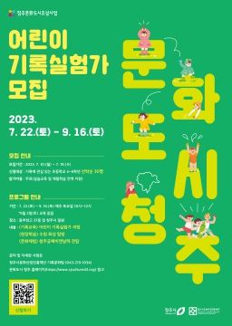 ‘어린이 기록실험가’에 함께하고 싶은 초등학교 4~6학년 어린이는 오는 19일까지 문화도시 청주 홈페이지에서 신청하면 된다.