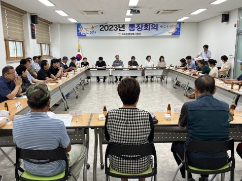 이날 통장 회의를 시작하기에 앞서 박대하 산업건설위원장과 김경희 복지환경국장의 주요 시정에 관한 설명에 이어, 하반기 정기인사로 전보된 직원 인사 시간을 가진 후, 시정 홍보 사항을 전달하고, 자체 회의 순으로 진행했다.