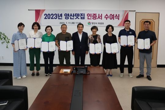 [제주교통복지신문 김강석 기자] 양산시는 2023년도 양산맛집 8개소를 선정하고 11일 인증서 수여식을 진행했다.