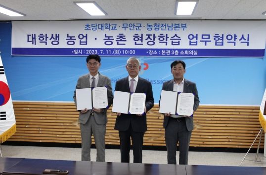 이날 협약식은 김성훈 무안부군수, 박종구 초당대학교총장, 박종탁 전남농협본부장 등이 참석한 가운데, 업무협약서 서명 교환 등으로 진행됐다.