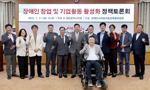[제주교통복지신문 김강석 기자] 대전시의회 장애인사회참여증진특별위원회 송인석 의원(국민의힘, 동구1)은 11일 대전광역시의회 소통실에서‘장애인 창업 및 기업활동 활성화 관련 정책토론회’를 개최했다.