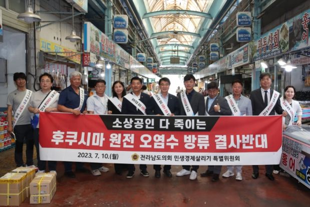 [제주교통복지신문 김강석 기자] 전남도의회 ‘민생경제 살리기 특별위원회(위원장 김태균, 광양)’는 지난 10일 목포종합수산시장을 방문해 일본 후쿠시마 원전 오염수 방류 반대 캠페인을 진행하고 상인들의 현장의견을 청취했다.