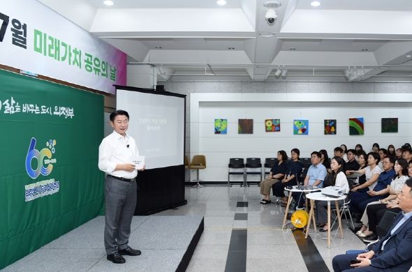 [제주교통복지신문 김강석 기자] 의정부시는 7월 11일 시청 본관 로비에서 직원 130여 명이 모인 가운데 ‘미래가치 공유의 날’을 개최했다.