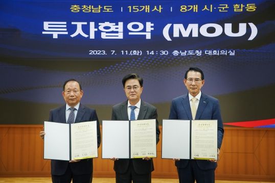 시에 따르면 이날 협약식에서 이완섭 서산시장, 김태흠 충남도지사, 정광춘 ㈜잉크테크 대표이사가 참석해 투자협약(MOU)을 체결하고 협약서를 교환했다.