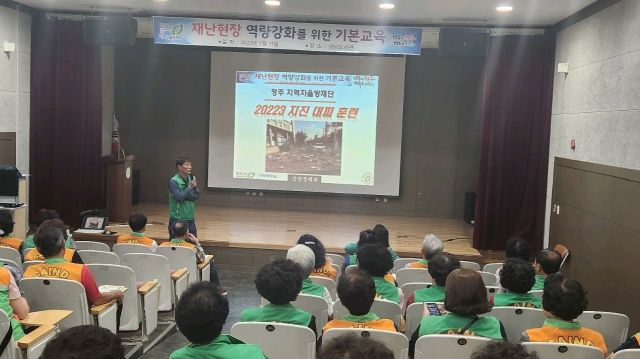 [제주교통복지신문 김강석 기자] 청주시 지역자율방재단과 청주시는 11일 청주상당도서관에서 지역자율방재단원 및 공무원 90여명이 참석한 가운데 지진 대피훈련을 실시했다.