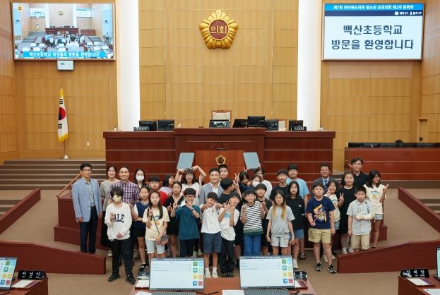 김정기(부안) 의원은 “오늘 모의의회에서 의원의 역할을 직접 체험해 봄으로써 지방의회의 기능과 역할에 대해 배우게 될 것”이라면서 “백산초등학교 100주년을 축하하며 자긍심을 가지길 바란다”고 격려했다. 이날 참석한 김양원 의회사무처장도 “도의회는 도민을 대표하는 기관으로서 중요한 일을 하고 있음을 알게 될 것이며 오늘 체험이 여러분의 인생에서 의미있는 시간이 되길 바란다”고 말했다.