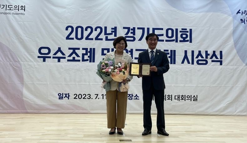 [제주교통복지신문 김강석 기자] 경기도의회 여성가족평생교육위원회 이애형 의원(국민의힘, 수원10)이 11일 경기도의회 대회의실에서 열린 ‘2022년 경기도의회 우수조례 및 우수연구단체 시상식’에서 2관왕의 영예를 안았다.
