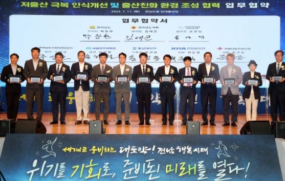 전남도와 전남도의회 등 13개 기관·단체는 저출산 극복 인식 개선과 임신·출산 친화 환경 조성을 위해 업무협약을 하고 상호 연대와 협력을 강화하기로 했다.