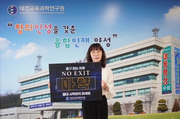 대전교육과학연구원 고덕희 원장은 “이미 마약 중독이 우리 일상 속에 깊이 파고들어 우리 모두를 위협하고 있다. 절대 마약은 시작해서는 안된다.”며 마약범죄 퇴출에 대한 전국민적 공감대 형성을 강조했다.