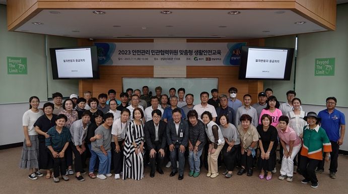 [제주교통복지신문 김강석 기자] 경산시는 11일, 경일대학교 8호관에서 안전 분야별 국민안전교육 강화를 위해 민관협력위원 50여 명을 대상으로‘맞춤형 생활안전교육’을 했다.