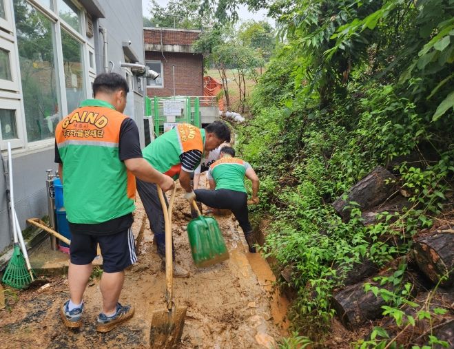 지난 11일에는 연서면 소재 요양원인 ‘사랑의 마을’에 토사가 무너져 자율방재단원, 연서면 직원 등 15명이 긴급 출동해 막힌 수로를 뚫는 작업을 실시했다.